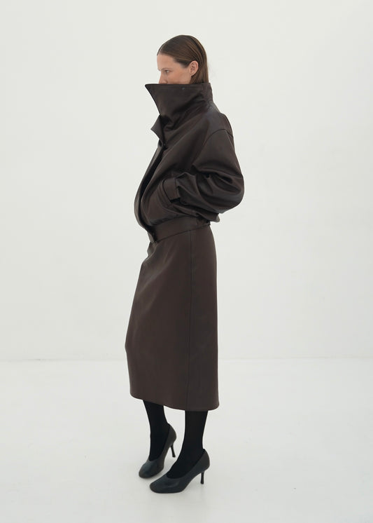Calfskin High-Collar Jacket brown