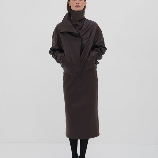 Calfskin High-Collar Jacket brown